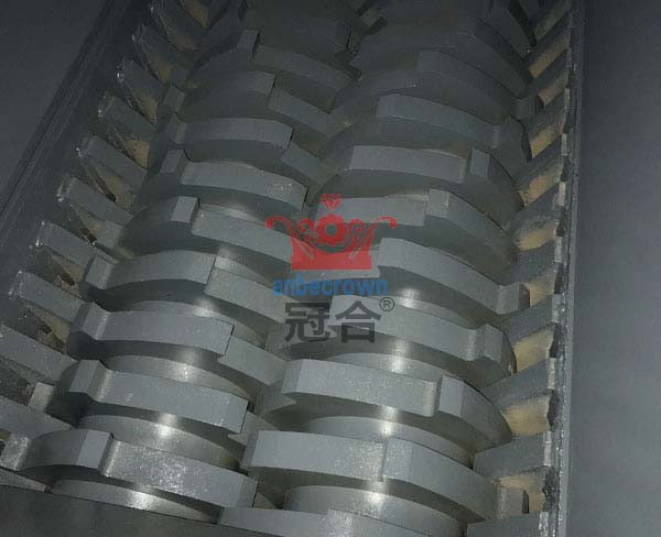雙軸撕碎機主從動軸上的螺旋齒刀盤交錯排列,使物料進入后,同時受到擠、撕、剪的作用,從而使各種金屬物料得到破碎。由于所需破碎的金屬大多脆硬,雙軸撕碎機破碎機內(nèi)片,小齒輪,鐵篩桶等機件,是用耐磨損的堅硬材料合金鋼制成,以使主軸在破碎鐵屑時具有較大的扭矩。另外,主軸使用的是液力偶合器驅(qū)動,以消除電機過高的峰值電流并吸收主軸的振動。