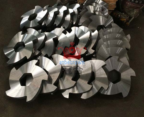 設備刀具的材料,材料常采用冷作模具鋼、熱作模具鋼來制作。常用鋼材牌號D2(Cr12Mo1V1)、DC53(Cr8Mo2SiV)、H13(4Cr5MoSiV1)、SKD11(Cr12MoV)等。經濟性能經濟性每套刀具處理的價格(元)/每套刀具處理廢舊物料的數量(噸)。再者就是刀具的使用壽命,刀具的原材料,材料有益合金元素量與有害合金元素量的含量。刀具的結構,刀具之間的切割間隙、刀具的角度、刀具刀刃處的表面粗糙度。刀具的熱處理,刀片的硬度、同一表面硬度均勻度,刀具回轉速度,即刀具相對物料的切削速度,刀具的切削力,即撕碎機設備的動力。